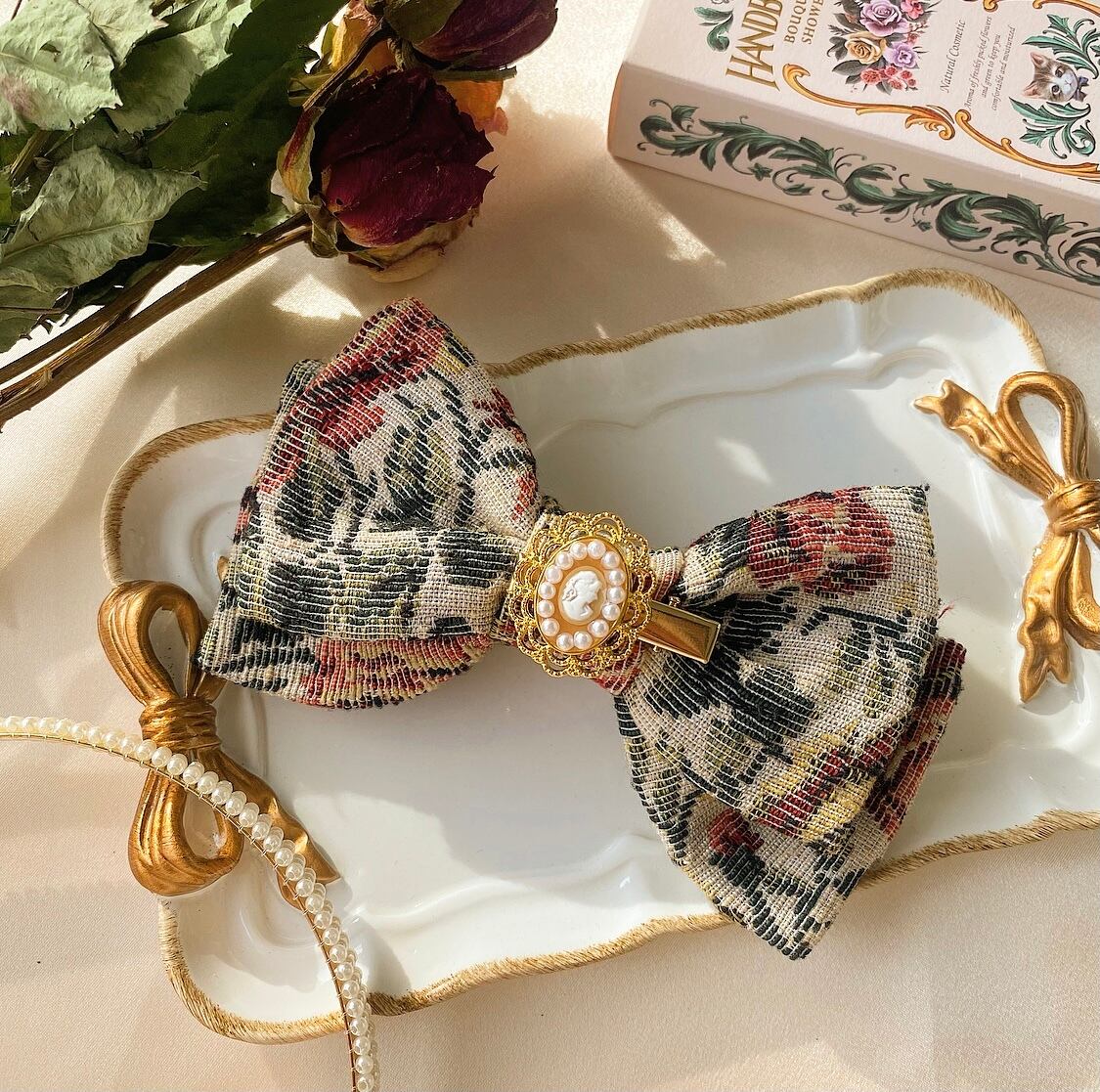 【ゴブランのリボンバレッタ (light brown) 】